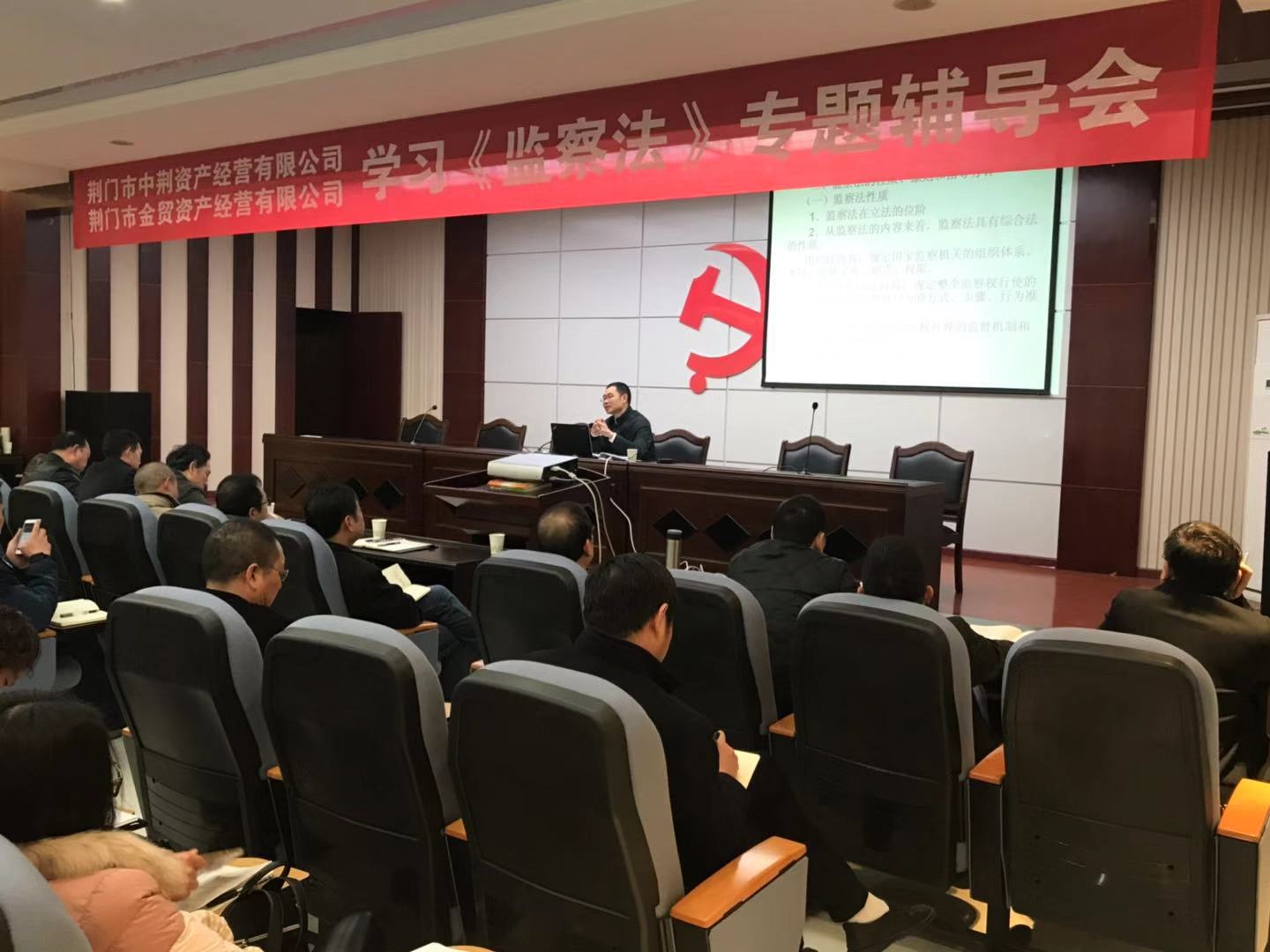 2018年12月5日上午,市中荊資產(chǎn)經(jīng)營(yíng)有限公司、市金貿(mào)資產(chǎn)經(jīng)營(yíng)有限公司在五樓會(huì)議室聯(lián)合舉辦了《中華人民共和國(guó)監(jiān)察法》專(zhuān)題輔導(dǎo)會(huì),中荊投資控股集團(tuán)有限公司領(lǐng)導(dǎo)及系統(tǒng)內(nèi)全體員工參加了輔導(dǎo)。會(huì)議由公司副總經(jīng)理梁世希同志主持,邀請(qǐng)了荊門(mén)黨校法學(xué)教授吳衛(wèi)東授課。