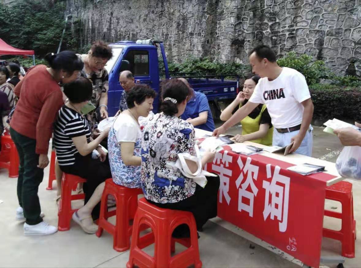 演出活動(dòng)中,襄沙化工廠和社區(qū)工作人員向觀眾發(fā)放創(chuàng)城和禁毒宣傳資料。